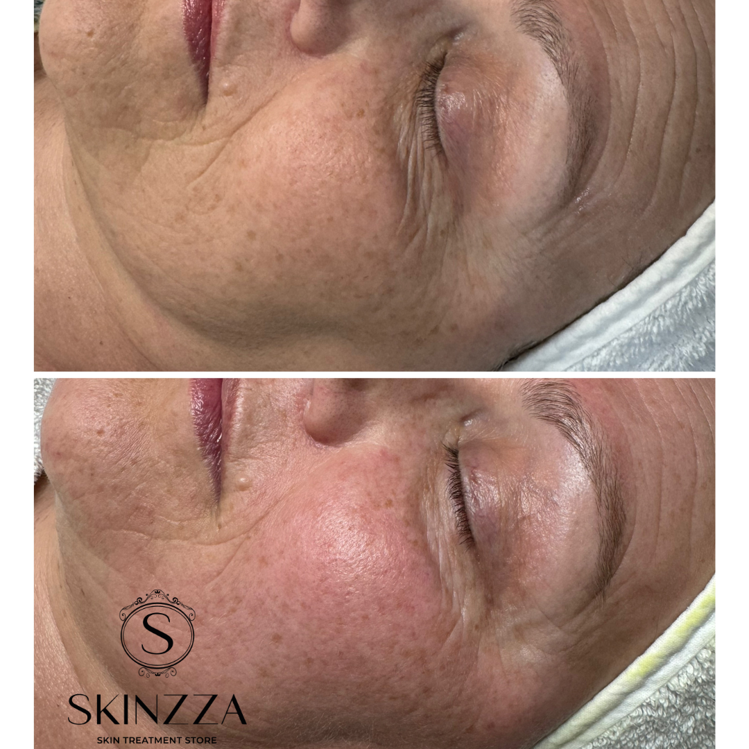 Na de behandeling zag ik al direct dat de diepe groeven en fijne lijntjes minder zichtbaar waren. En dat na 1 behandeling!